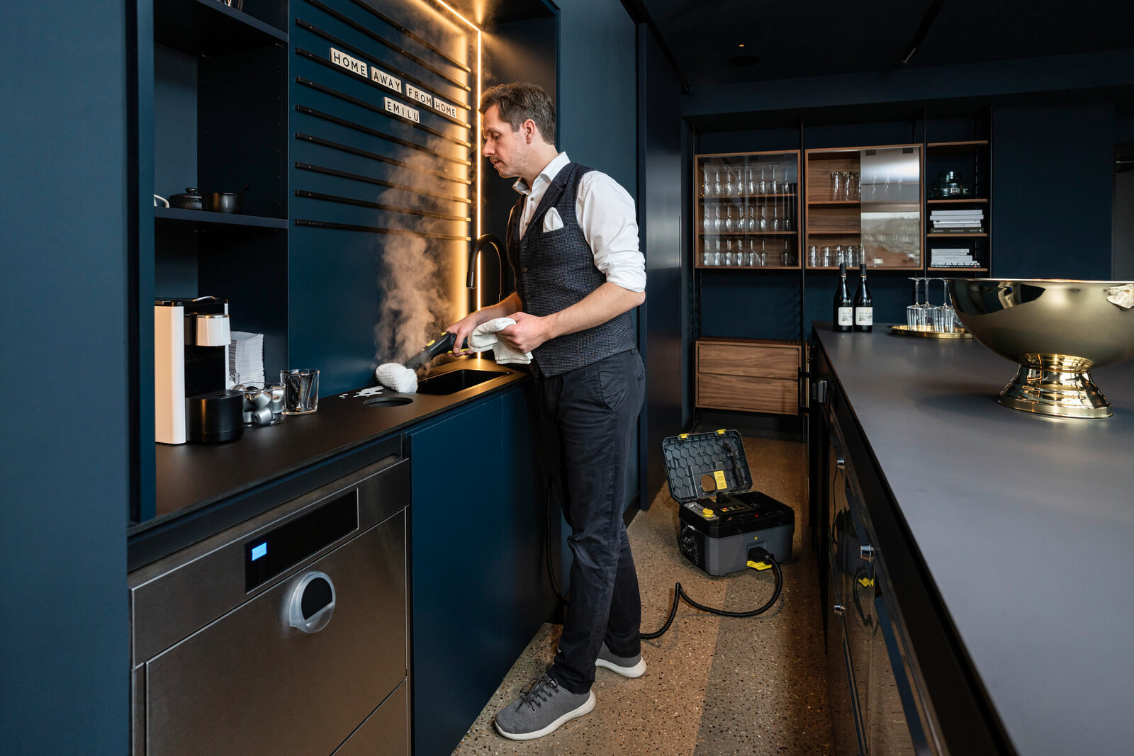 Az egyedülálló all-in-one kialakításnak köszönhetően nagyon kompakt, robusztus és tartós, emellett széles körű felszereltséggel is bír, továbbá nagyon könnyen használható: Az SG 4/2 Classic gőztisztító kiváló tisztítási eredményekkel, kiváló ár/érték aránnyal és maximális hatékonyságával nyújt lenyűgöző eredményeket. A mindössze 7,5 kilogramm súlyú, könnyű gép kategóriájának legkompaktabb professzionális gőztisztítója, amely akár mindössze 3 perc alatt használatra készen áll, és 4 bar gőznyomásával több mint elegendő teljesítményt kínál a vegyszerek használata nélküli mélytisztításhoz és higiéniához. A pultokat, adagolóberendezéseket, csempéket, főzőlapokat, sütőket és még sok mást is alaposan és aprólékosan megtisztít egészen a legkisebb résekig – függetlenül a szennyeződés mértékétől. Különösen makacs szennyeződések esetében a készülékhez csatlakoztatható VapoHydro funkció forró vízzel rásegít a tisztításra, és hatékonyan távolítja el a durva szennyeződéseket és zsírokat is, és az ehhez a funkcióhoz tartozó víztartály a készülékről bármikor eltávolítható és feltölthető. Az olyan tartozékok, mint például a gőztömlő, a kézi fúvóka, a pontsugaras fúvóka, a Power fúvóka, a körkefe, a lapos kefe, a gőzkaparó és a mikroszálas kendő közvetlenül a gépben tárolhatók – kiegészítésként opcionálisan padlófej is rendelhető.